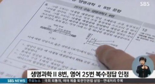 수능 오류 문항 복수정답 인정. 사진출처|방송캡처