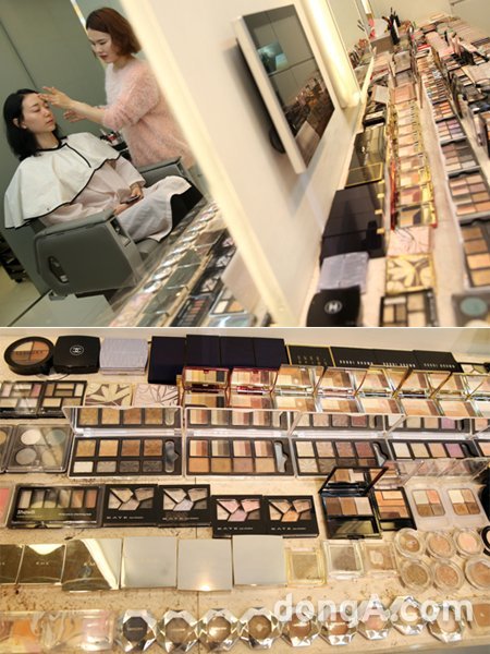 ▲ 헤어샾에 들어서자 그를 기다리고 있는 ‘어마 무시한 색조 화장품들’