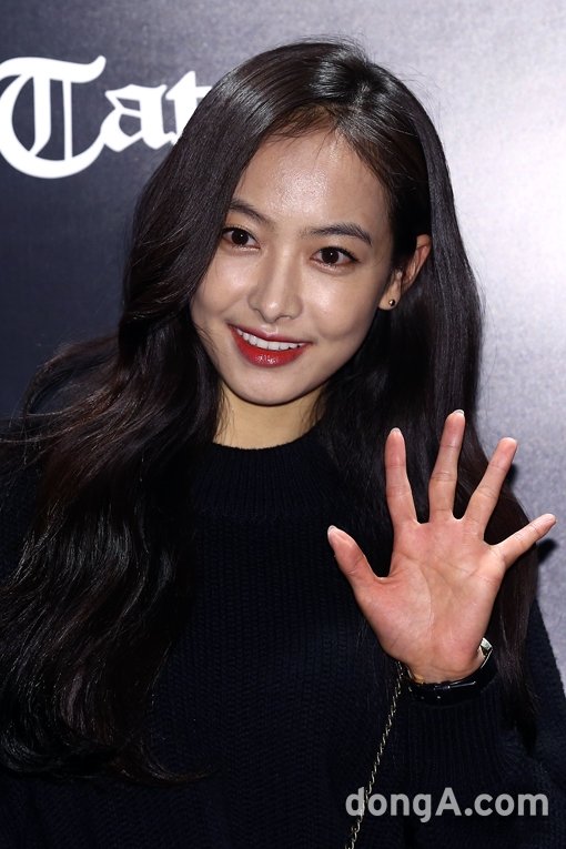 에프엑스의 멤버 빅토리아가 25일 오후 서울시 강남구 청담CGV에서 열린 ‘타투 아이웨어’를 전개하는 ‘오케이미’ 브랜드 런칭행사에서 포토타임을 하고 있다.