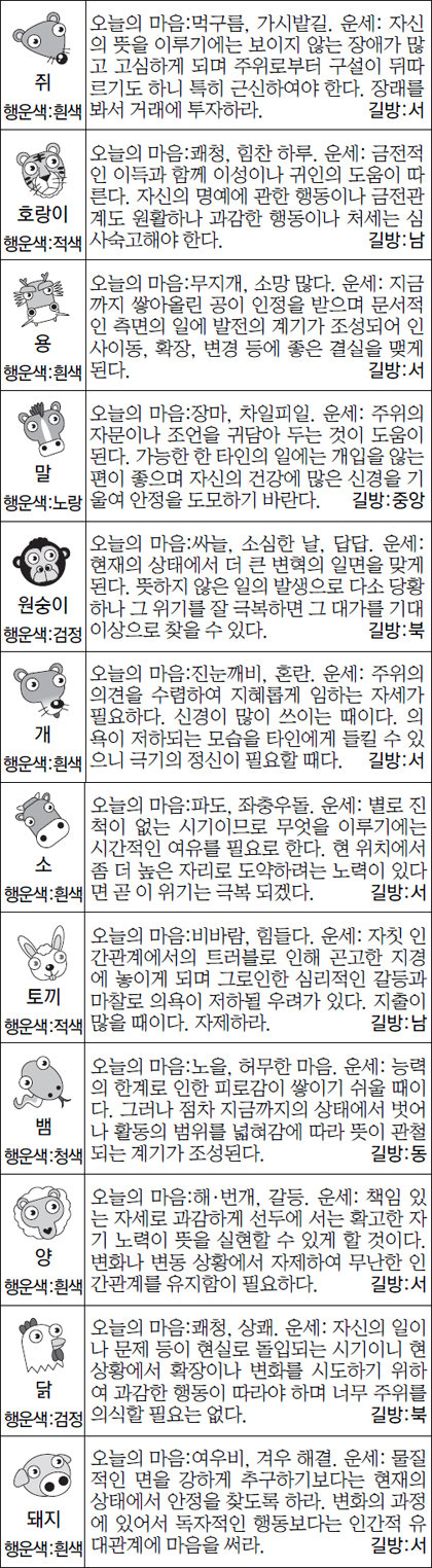 금일복권, 주식, 부동산매입 행운의 띠: 호랑이,말,개