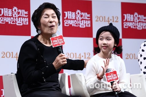 배우 김혜자가 26일 오전 서울시 강남구 압구정CGV에서 열린 영화 ‘개를 훔치는 완벽한 방법’ 제작발표회에서 기자간담회를 하고 있다.