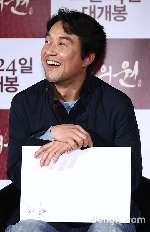배우 한석규가 26일 오후 서울시 중구 동대문 메가박스에 열린 영화 ‘상의원’ 제작보고회에서 그림을 공개하고 있다.