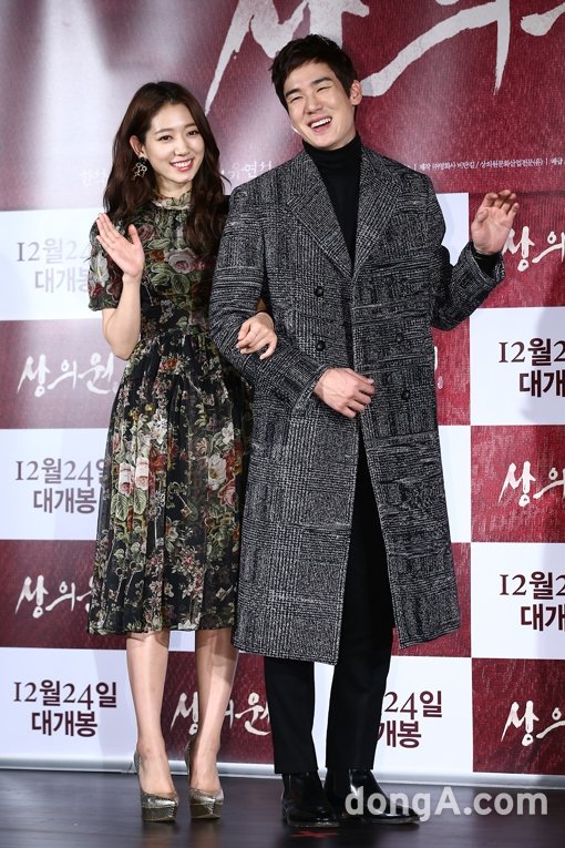 배우 박신혜(왼쪽), 유연석이 26일 오후 서울시 중구 동대문 메가박스에 열린 영화 ‘상의원’ 제작보고회에서 포토타임을 하고 있다.