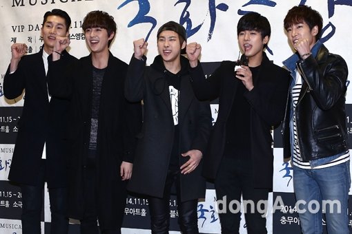그룹 에이젝스가 26일 오후 서울시 중구 충무아트홀에서 열린 뮤지컬 ‘국화꽃향기’ VIP데이에서 포토타임을 하고 있다.