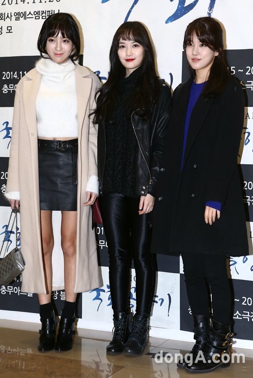 배우 정혜성과 스피카의 멤버 박나래, 양지원이 26일 오후 서울시 중구 충무아트홀에서 열린 뮤지컬 ‘국화꽃향기’ VIP데이에서 포토타임을 하고 있다.