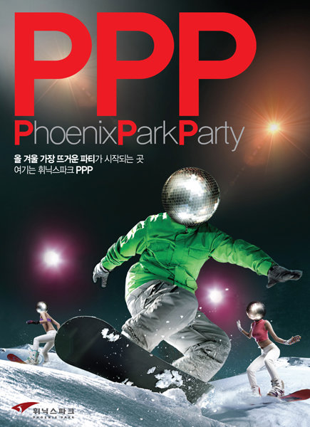 휘닉스파크의 14/15 동계시즌 기업PR 신문광고는 젊은이들의 뜨거운 열정이 펼쳐지는 특별한 공간이라는 콘셉트를 고객들에게 전달하고자 기획됐습니다. 수상작인 ‘여기는 휘닉스파크PPP’ 광고는 휘닉스파크를 알리기 위해 2018동계올림픽 개최지인 국내 최고 스키장을 기반으로 겨울에만 만나는 특별한 재미가 가득한 공간, 음악과 파티가 펼쳐지는 짜릿한 공간이라는 점을 표현했습니다.