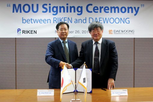 (주)대웅제약(대표 이종욱)이 26일 서울 강남구 삼성동에 위치한 대웅제약 본사에서 일본 이화학연구소(이하 RIKEN)와 신약개발 분야 협력에 대한 양해각서(MOU)를 체결했다.