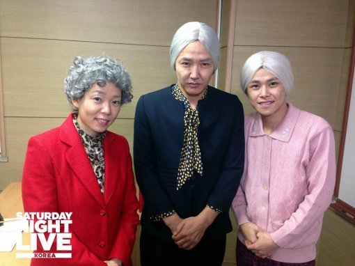 사진에는 ‘홍제동 김수미’ 유병권이 개그우먼 정명옥, 배우 윤상현과 할머니 분장을 하고 다소곳이 손을 모으고 있는 유쾌한 모습이 담겨 있다. 할머니 분장을 한 유병권과 정명옥, 윤상현의 유쾌하고 특별한 조합에 ‘SNL 코리아’ 마지막 회에 대한 관심이 집중되고 있다.