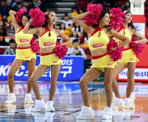 27일 인천 삼산월드체육관에서 열린 ‘2014-2015 KCC 프로농구’ 인천 전자랜드와 창원 LG의 경기에서 전자랜드 치어리더가 화려한 공연을 선보이고 있다.