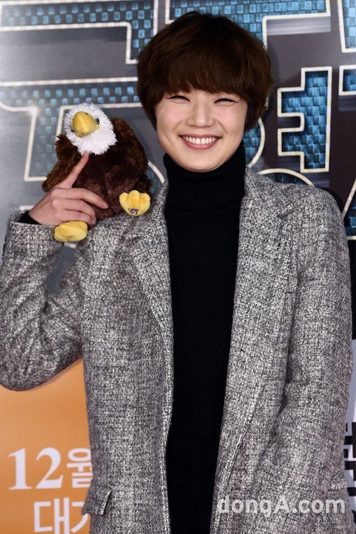개그우먼 안영미가 27일 오후 서울시 광진구 건대입구 롯데시네마에서 열린 영화 ‘덕수리 5형제’ VIP시사회에서 포토타임을 하고 있다.