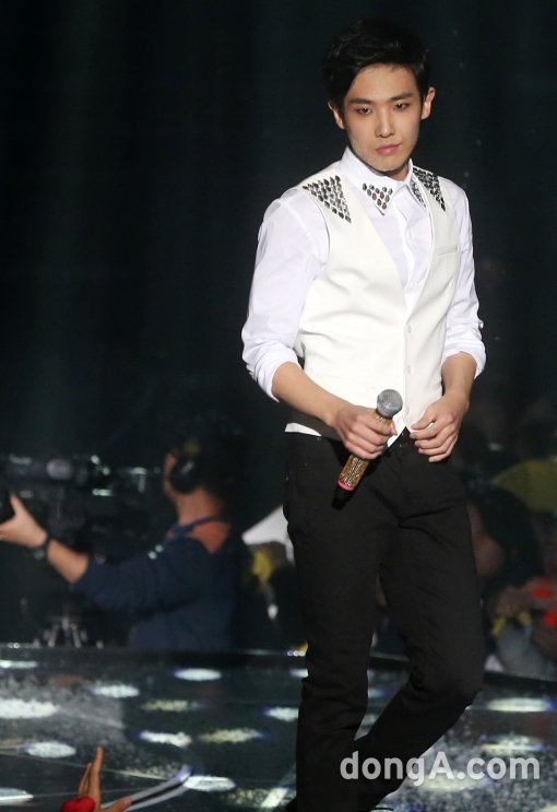 그룹 엠블랙의 이준이 29일 오후 서울 송파구 방이동 올림픽공원 올림픽홀에서 열린 '2014 엠블랙 커튼 콜' 콘서트에서 공연을 준비하고 있다.