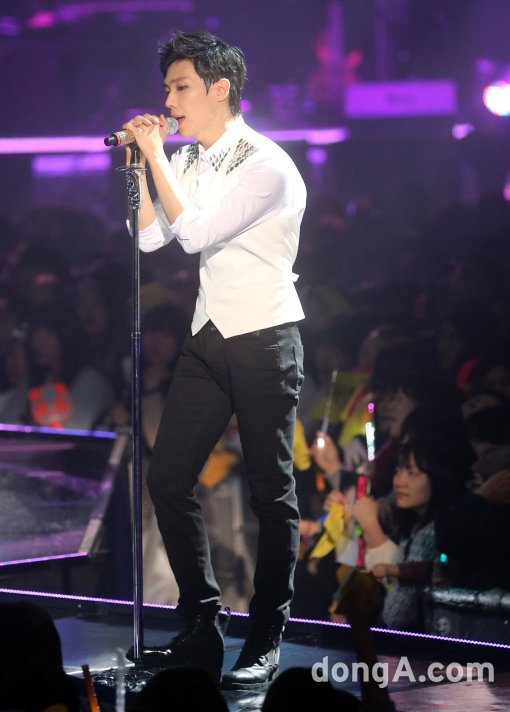 그룹 엠블랙의 이준이 29일 오후 서울 송파구 방이동 올림픽공원 올림픽홀에서 열린 '2014 엠블랙 커튼 콜' 콘서트에서 공연을 선보이고 있다.