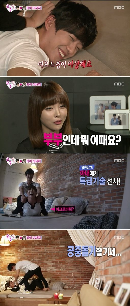 남궁민과 홍진영은 29일 방송된 MBC ‘우리 결혼했어요4’(이하 ‘우결’)에서 타이 마사지에 도전했다.