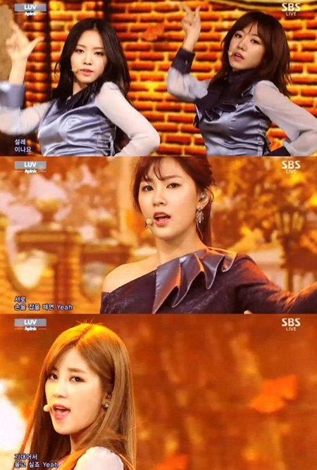 에이핑크는 30일 오후 방송된 SBS ‘인기가요’에서 신곡 ‘러브(LUV)’ 무대를 선보였다.