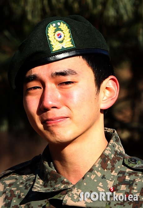 이날 유승호가 팬들과 가진 전역식에서 눈물을 흘리고 있다.