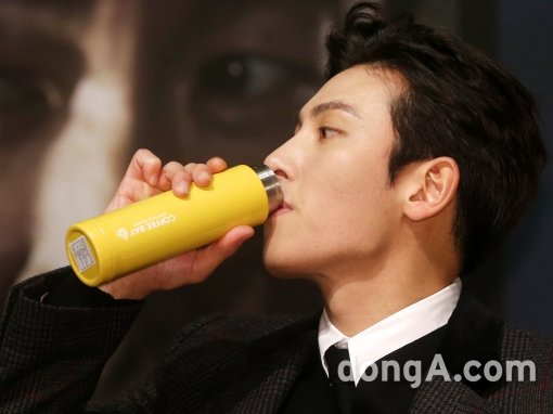 배우 지창욱이 4일 오후 서울 강남구 더 라움에서 열린 KBS 드라마 '힐러' 제작발표회에서 물을 마시고 있다.