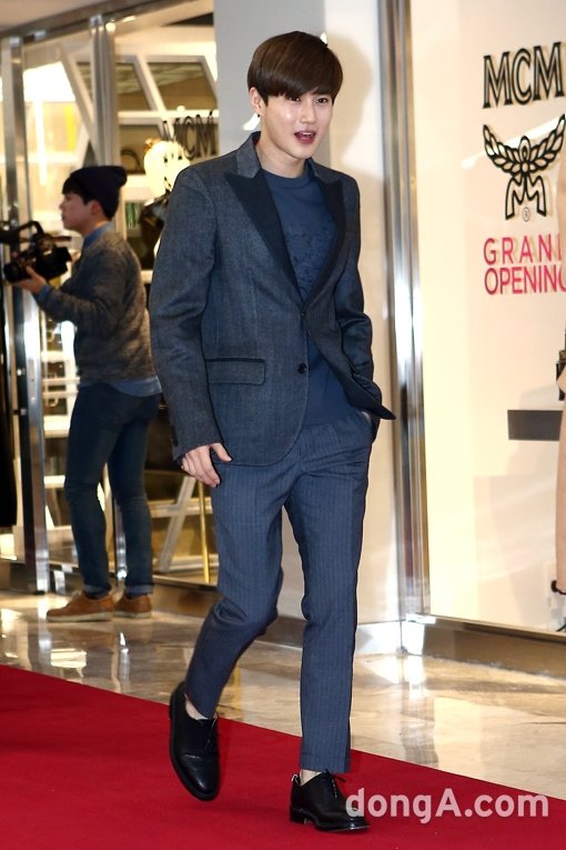 엑소의 멤버 수호가 5일 오후 서울시 강남구 코엑스몰에서 열린 M 브랜드 오픈 기념 파티행사에서 포토타임을 하고 있다.