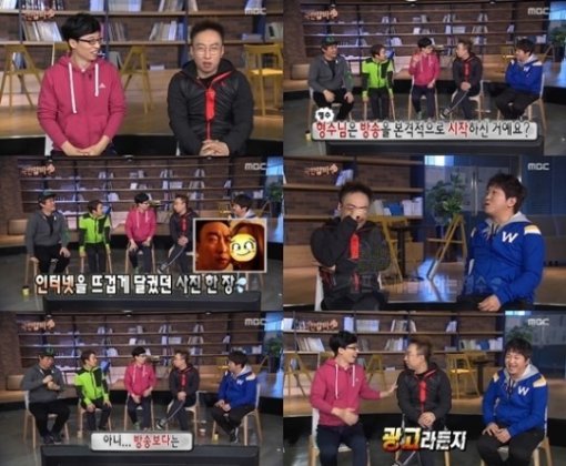 이날 방송에서는 멤버들(유재석, 박명수, 하하, 정형돈, 정준하)이 최근 화제가 된 박명수와 아내 사진에 대해 이야기를 했다.