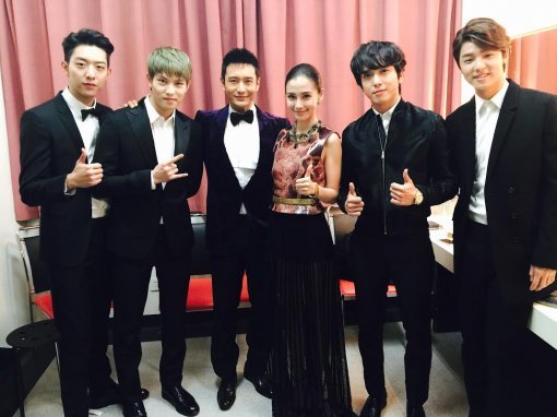최근 정용화 공식 웨이보(http://www.weibo.com/jyheffect89)에는 “Thank u ~!^^*”라는 글과 함께 한 장의 사진이 게재됐다. 공개된 사진 속에는 블랙 수트를 차려 입은 씨엔블루 멤버들과 중국 배우 황효명 그리고 안젤라 베이비가 나란히 선 채로 포즈를 취하고 있다.