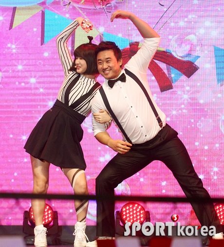 NC 김태군이 8일 오후 서울 중구 장충동 신라호텔에서 열린 ‘2014 카스포인트 어워드’에 참석해 걸그룹 라붐과 멋진 콜라보 무대를 펼치고 있다.