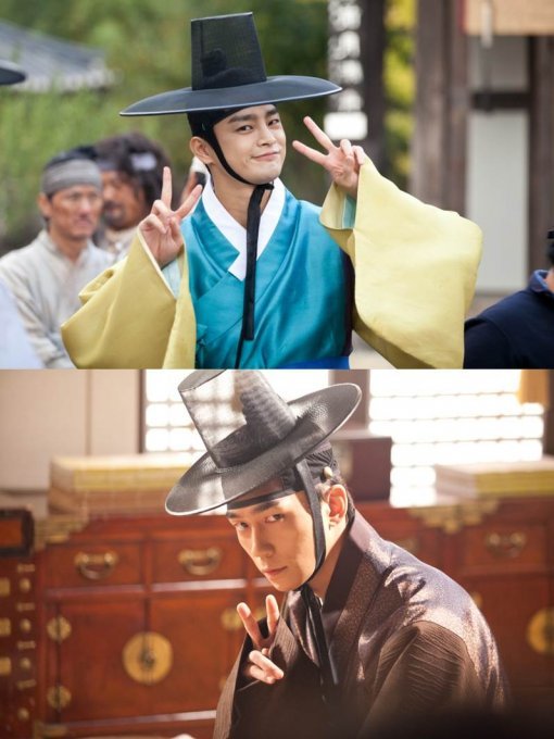 '왕의 얼굴'에서 활약 중인 배우 서인국과 신성록의 브이 포즈 대결이 눈길을 사로잡고 있다.