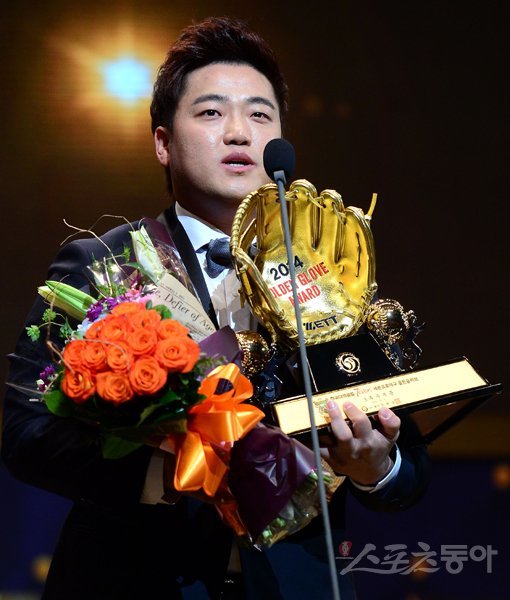 박석민은 9일 열린 골든글러브 시상식에서 데뷔 11년 만에 3루수 부문을 거머쥔 뒤 “부모님과 장인장모님, 야구 집중할 수 있게 지원해주신 삼성그룹 계열사, 프런트 모든 분들께 고맙다는 말을 하고 싶다”며 “또 항상 변함없는 믿음으로, 너무 심한 믿음을 보여주신 류중일 감독님께도 감사드린다. 이제 11년차이기 때문에 오래 걸렸다고 생각하지 않는다. 상을 받은 것에 만족한다”고 소감을 전했다. 가장 기뻐할 아들 준현이와 서준이도 빼놓지 않았다. 그는 “두 아들에게 자랑스러운 아빠가 되고 싶었는데 다행”이라며 웃고는 “첫 아이 준현이가 야구를 좋아하는데 더 잘 해야 하겠다”고 책임감을 드러냈다.