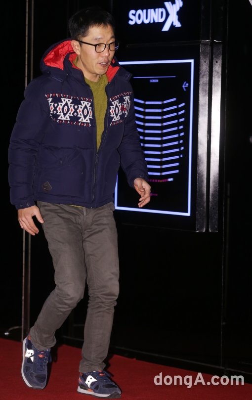 방송인 김제동이 10일 오후 서울 영등포 타임스퀘어에서 열린 영화 국제시장 VIP시사회에 참석하고 있다.