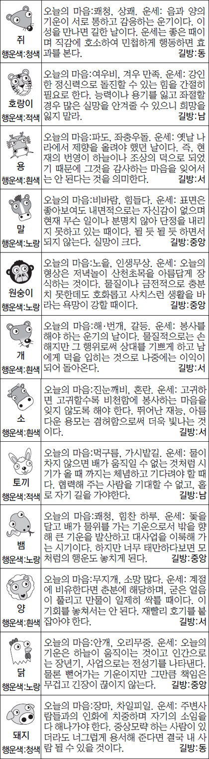 금일 주식, 부동산 매도 행운의 띠: 호랑이,말,개