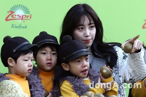 방송인 최희가 11일 오전 서울시 동아미디어센터 앞에서 열린 ‘제스프리 제주 골드키위 출하 기념 행사’에서 포토타임을 하고 있다.