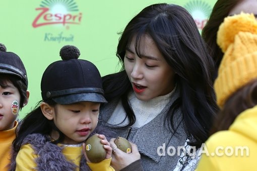 방송인 최희가 11일 오전 서울시 동아미디어센터 앞에서 열린 ‘제스프리 제주 골드키위 출하 기념 행사’에서 포토타임을 하고 있다.