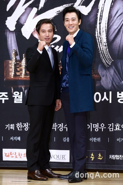 배우 조재현(왼쪽), 김래원이 11일 오후 서울시 양천구 목동 SBS사옥에서 열린 드라마 ‘펀치’ 제작발표회에서 포토타임을 하고 있다.