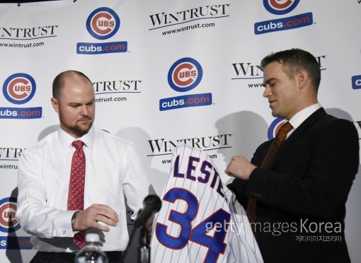 레스터는 16일(이하 한국시각) 미국 일리노이주 시카고에 위치한 한 식당에서 시카고 컵스 테오 엡스타인 사장 등과 함께 공식 입단 행사에 참석했다.