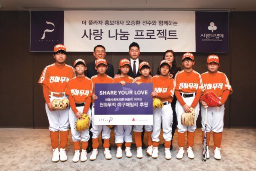 사랑 나눔 프로젝트는 ‘따뜻한 사랑 나누기(Share Your Love)’을 슬로건으로 더 플라자가 홍보대사 오승환과 함께 진행하는 재능기부 및 사회 소외계층 교육지원 사업이다. 이번 후원금은 지난 13일 더 플라자가 오승환을 초청해 진행한 사랑 나눔 만찬 ‘더 위너스 디너(The Winners’ Dinner)‘를 통해 마련되었으며, 서울 사랑의열매를 통해 노원구 중계동 소재의 마들사회복지관 소속 어린이 야구단 ‘천하무적 야구패밀리’에 전달되었다.