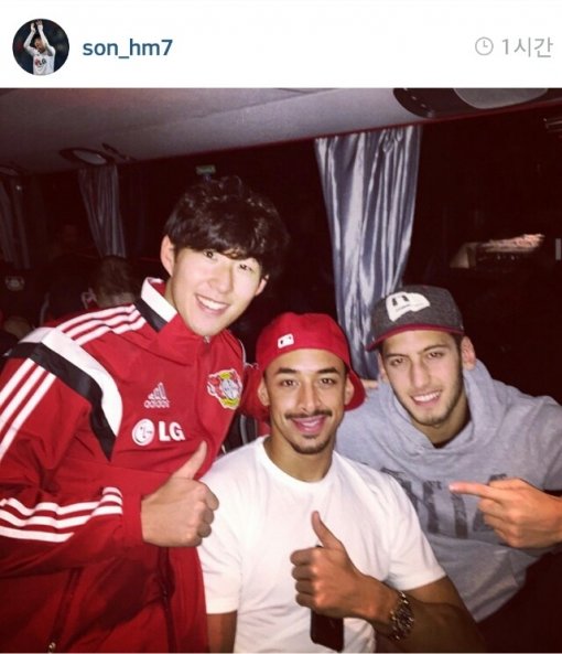 사진 속 손흥민은 구단 트레이닝복을 입고 엄지손가락을 치켜세우며 환하게 웃는 모습이다. 사복 차림의 카림 벨라라비와 하칸 찰하노글루도 밝은 표정으로 승리의 기쁨을 만끽하고 있다.