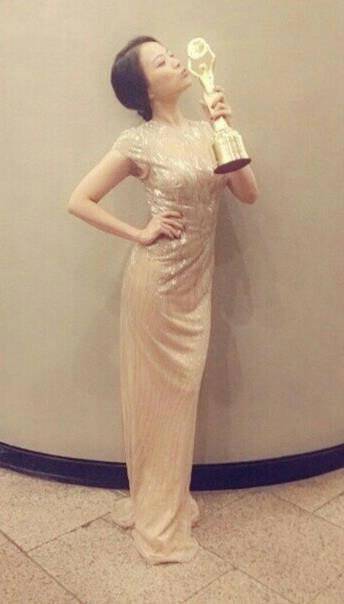 공개된 사진에는 천우희가 청룡영화제 여우주연상 트로피에 입맞춤을 하고 있는 모습이 담겨 있다.