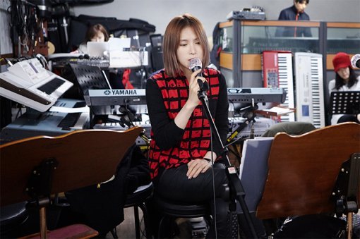 가수 거미가 콘서트를 앞두고 밴드와 함께 연습하는 사진을 공개했다.