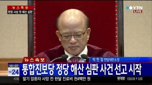 이날 박한철 헌법재판소 소장은 헌법재판소 대심판정에서 열린 통합진보당 정당해산심판 마지막 재판에서 "피청구인인 통합진보당을 해산한다"고 발표했다. 이와 함께 "통합진보당 소속 국회의원 5명의 의원직도 모두 박탈한다"고 덧붙였다.