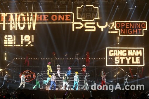 가수 싸이가 20일 오후 서울시 송파구 올림픽공원 체조경기장에서 열린 ‘올나잇스탠드 2014’에서 멋진 공연을 하고 있다.