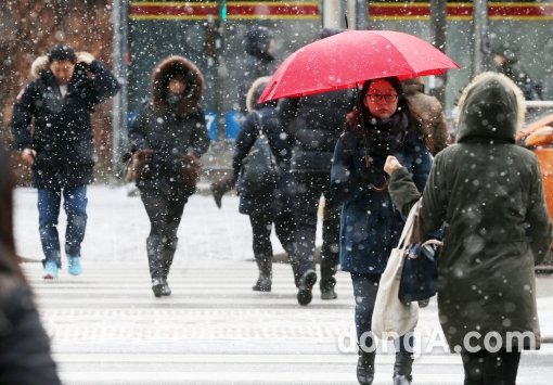 24절기 중 동지(冬至)인 22일 오전 서울 충정로 일대에서 시민들이 출근길을 재촉하고 있다. 아침 전국 대부분 지역이 영하권에 머무는 가운데 서울·인천·경기남부에 출근길 교통대란이 예상됐다. 기상청은 오후부터 기온이 오르면서 강추위도 한풀 꺾일 것으로 예보했다.