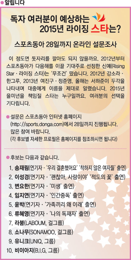 [알립니다] 독자 여러분이 예상하는 2015년 라이징 스타는?
