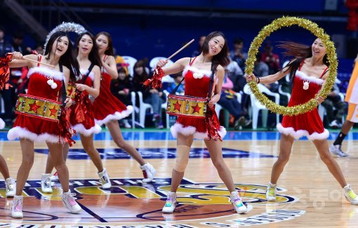 22일 인천 도원체육관에서 열린 ‘KB국민은행 2014-2015 여자프로농구’ 인천 신한은행과 청주 KB스타즈의 경기에서 신한은행 치어리더가 화려한 공연을 선보이고 있다.