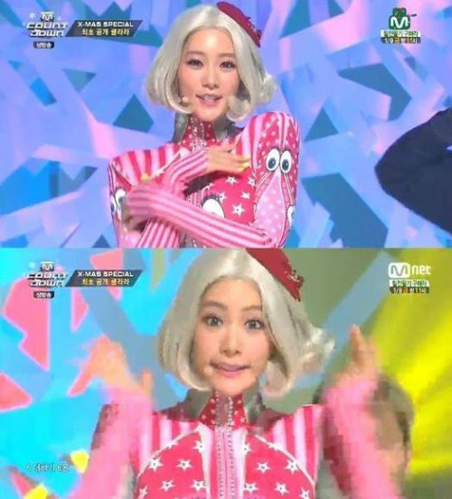 클라라는 25일 방송된 Mnet ‘엠카운트다운’에 출연해 ‘귀요미송2’ 무대를 선보였다. 분홍색 컬러의 전신 타이즈 의상을 입고 등장한 클라라는 특유의 섹시한 몸매로 귀여운 안무와 노래를 소화하며 다양한 매력을 뽐내 주목받았다.