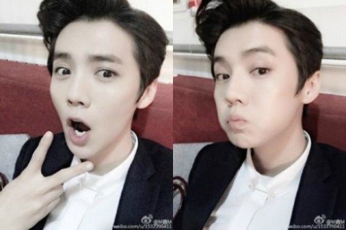 공개된 사진에는 루한이 입을 벌린 채로 손가락으로 브이를 그리면서 익살스러운 표정을 지은 모습이 담겨 있다.