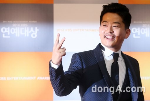 개그맨 김준호가 27일 오후 서울 여의도 KBS 공개홀에서 열린 '2014 KBS 연예대상' 레드카펫 행사에 참석해 포토타임을 하고 있다.