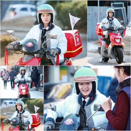 민트 컬러 헬멧을 착용한 남보라가 교복치마 아래로 레깅스를 받쳐 입고 털장갑으로 중무장한 후 배달을 위해 출동하고 있는 것. 남보라는 ‘진심 원조 통닭’에 대한 자부심으로 당당하게 배달 스쿠터에 올라서는 똘망한 이순정의 모습을 리얼리티 넘치는 연기력으로 표현했다.