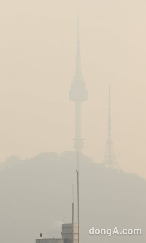 서울 등 중부지방을 중심으로 미세먼지 농도 수치가 높게 나타난 29일 오전 서울 남산 N서울타워가 뿌옇게 보이고 있다.