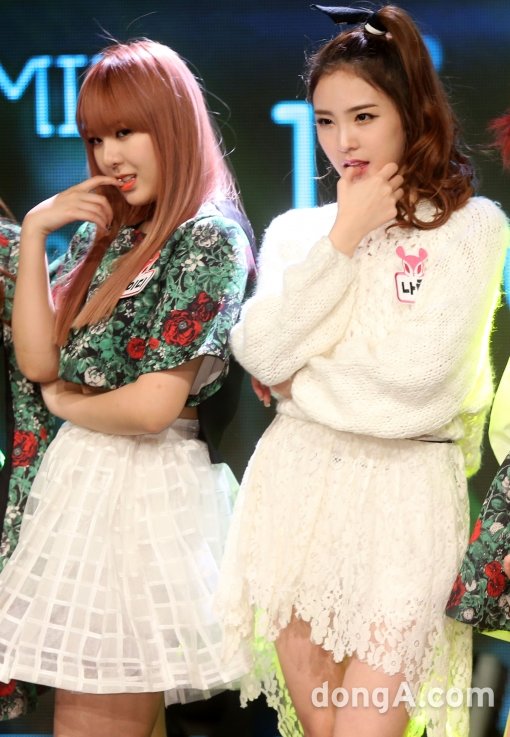 걸그룹 소나무의 하이디(왼쪽)와 나현이 29일 오후 서울 강남구 청담동 일지아트홀에서 열린 Deja Vu 데뷔 쇼케이스에서 포토타임을 하고 있다.