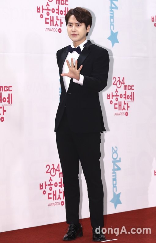 슈퍼주니어의 멤버 규현이 29일 오후 서울시 마포구 상암MBC에서 열린 ‘2014 MBC 방송연예대상’에 참석해 포토타임을 하고 있다.