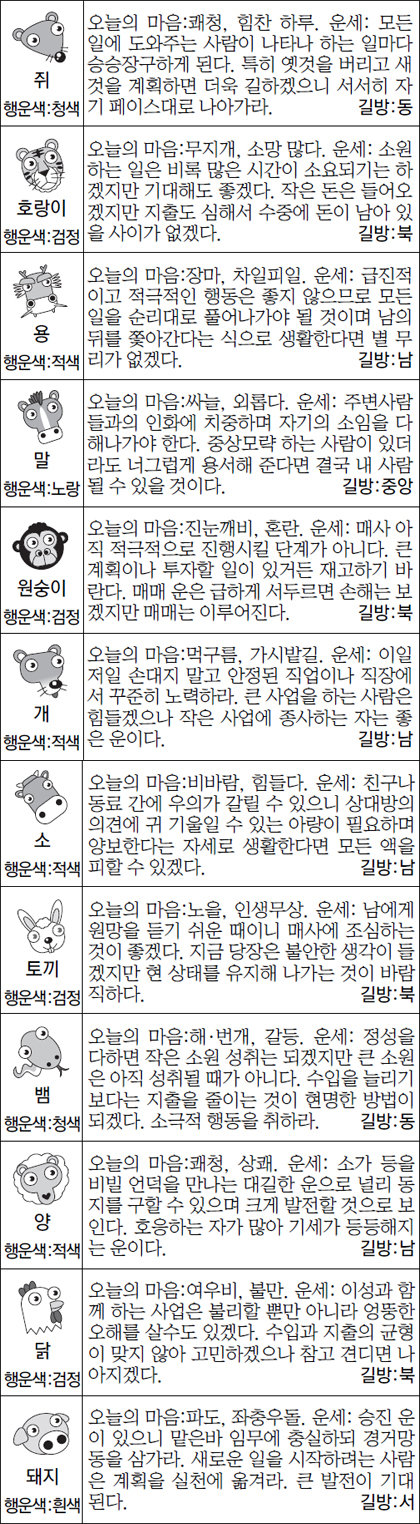 금일 주식, 부동산 매도 행운의 띠: 호랑이,말,개