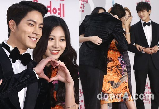 홍종현(왼쪽)과 유라가 29일 오후 서울시 마포구 상암MBC에서 열린 ‘2014 MBC 방송연예대상’에 참석해 포토타임을 하고 있다. 동아닷컴 방지영 기자 doruro@donga.com